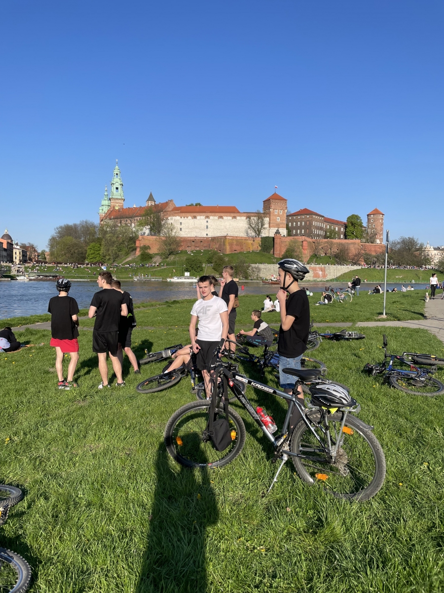 Zajęcia rekreacyjno - sportowe gr. 3. Wycieczka rowerowa malowniczą trasą wzdłuż Kanału Łączańskiego i dalej Wiślaną Trasą Rowerową do Krakowa. Po drodze zwiedzanie Klasztoru Benedyktynów w Tyńcu, toru kajakowego, odpoczynek pod Zamkiem Królewskim na Wawelu, przejazd przez Wisłę, Kładką Ojca Bernatka na Plac Nowy na Kazimierzu.